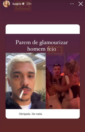 Luana Piovani hat einige Male über den Fall des jüngsten Verrats zwischen dem ehemaligen Paar Luísa Sonza und den Chico -Münzen kommentiert. Zum Beispiel machte die Schauspielerin einen Beitrag Geschichten Ein Bild von dem Moment teilen, in dem Chico auf einer Party Romantik erwischt wird und angeblich Sonza verrät. „Hör auf, hässlicher Mann zu glaurieren. Danke. Nichts “, schrieb sie in der Post.