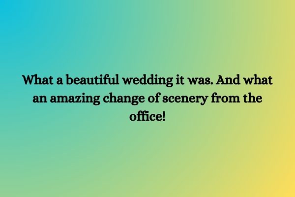 - Was für eine schöne Hochzeit es war. Und was für eine erstaunliche Veränderung der Landschaft aus dem Büro!