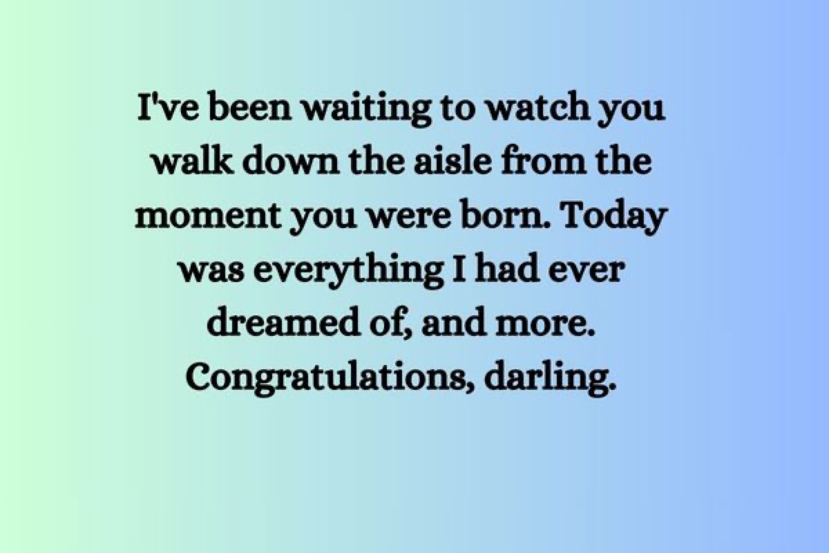 - Ich habe darauf gewartet, zuzusehen, wie du von dem Moment an, als du geboren bist, den Gang entlangging. Heute war alles, was ich jemals geträumt hatte, und mehr. Herzlichen Glückwunsch, Liebling.