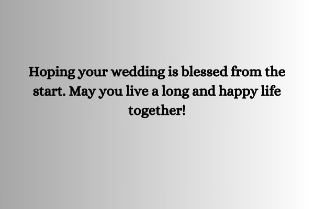 - In der Hoffnung, dass Ihre Hochzeit von Anfang an gesegnet ist. Mögest du ein langes und glückliches Leben zusammen führen!