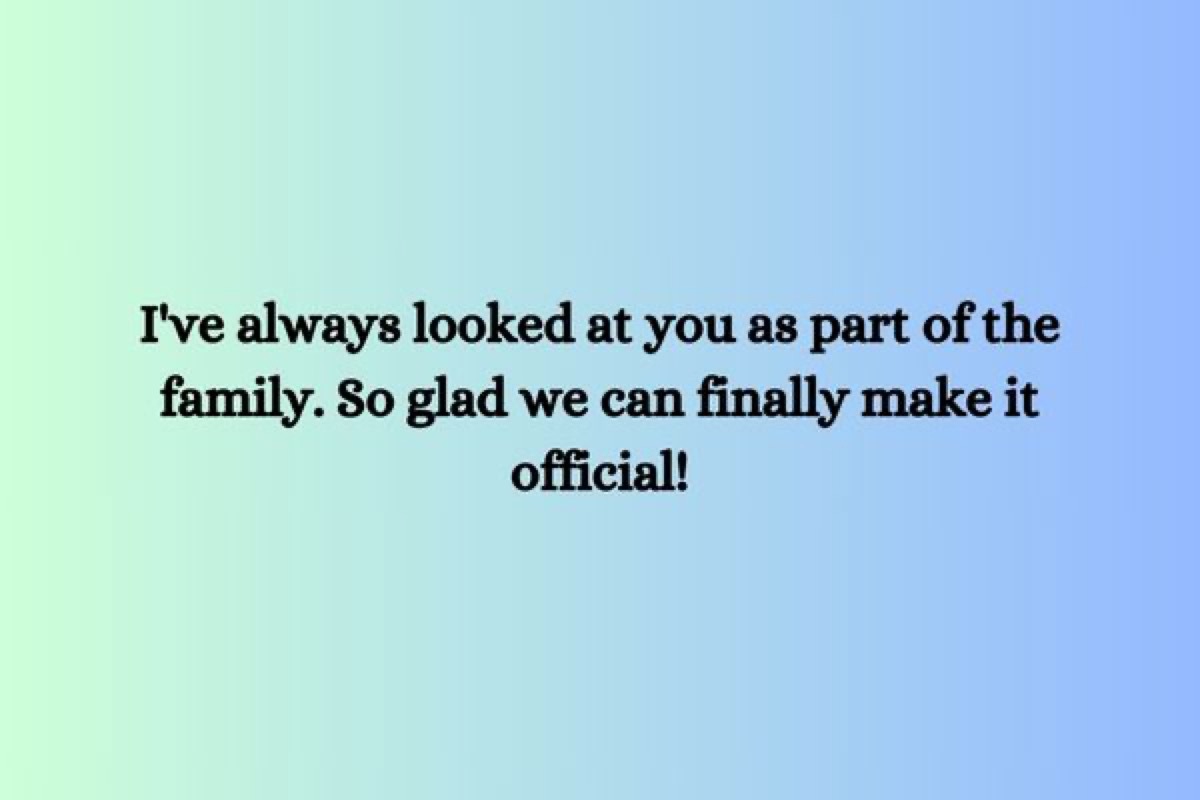 - Ich habe dich immer als Teil der Familie angesehen. Ich bin so froh, dass wir es endlich offiziell machen können!