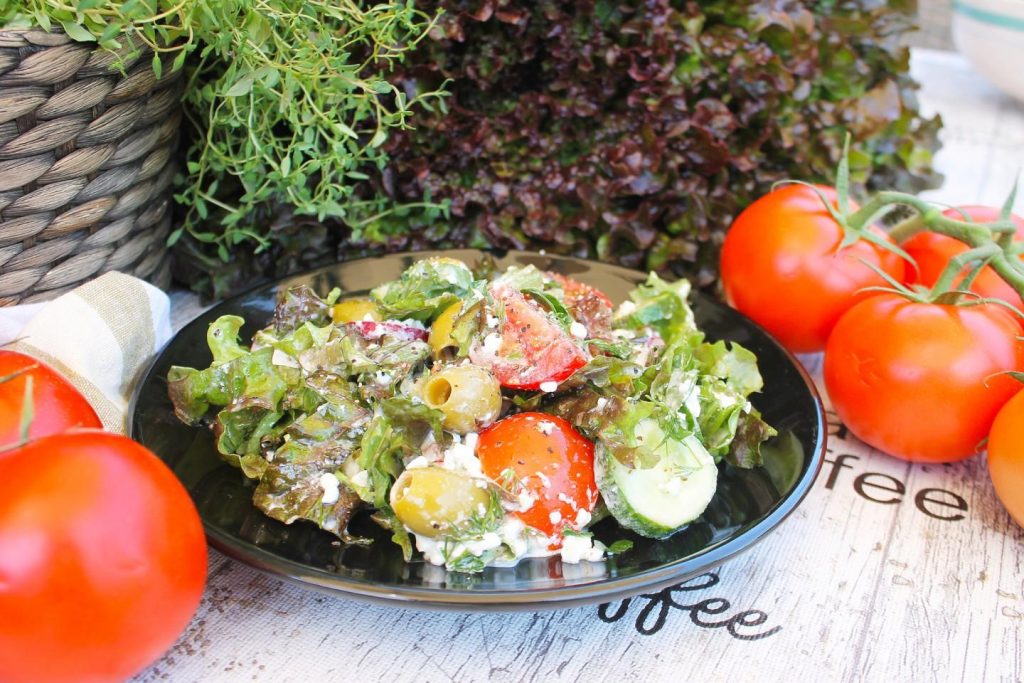 5. Salat mit Hüttenkäse, Tomaten und Kräutern