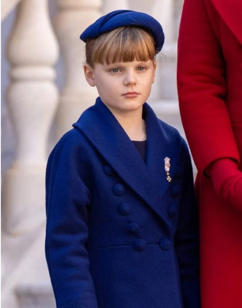 Gabriella de Monaco scheint kurz davor zu stehen, in jungen Jahren ein aufstrebender Modestar zu werden. Während der Feierlichkeiten sorgte sie zu einer Sensation, indem sie einen dunkelblauen Mantel mit dem ihrer Mutter Charlène de Monaco trug, signierte Didier Angelo. Aber was die Augen wirklich anzogen, war sein erstes Paar Louboutin mit High Heels. Mit nur achteinhalb Jahren hat Gabriella einen Sinn für Stil gezeigt, der auf eine zukünftige Mode -Ikone hinweist.