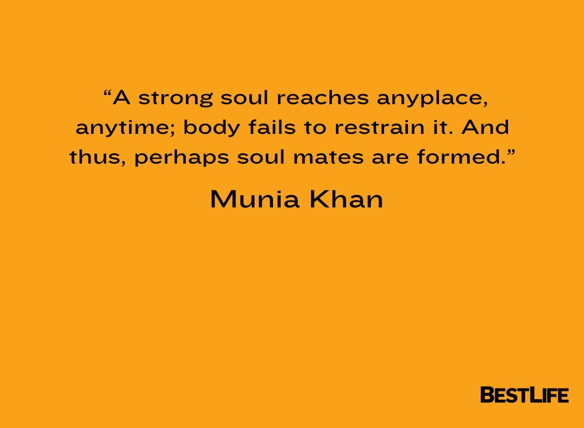 - "Eine starke Seele erreicht jederzeit irgendwann; der Körper kann sie nicht zurückhalten. Und daher werden vielleicht Seelenkollegen gebildet." - Munia Khan
