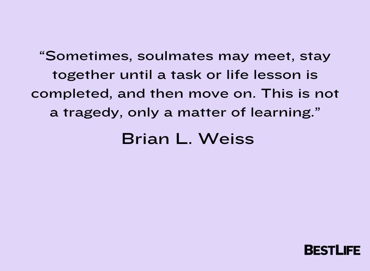 - "Manchmal können sich Seelenverwandte treffen, zusammen bleiben, bis eine Aufgabe oder eine Lebensstunde abgeschlossen ist, und dann weitermachen. Dies ist keine Tragödie, sondern nur eine Frage des Lernens." - Brian L. Weiss