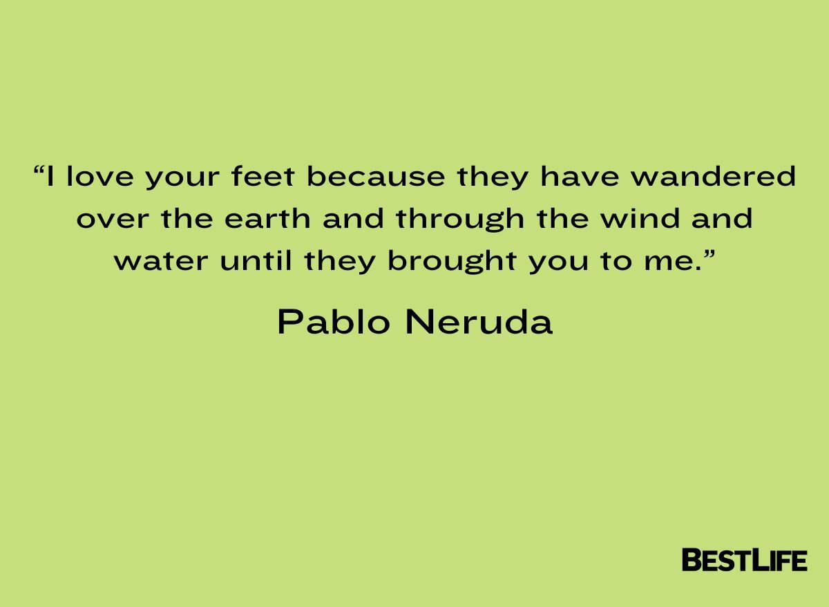 - "Ich liebe deine Füße, weil sie über die Erde und durch Wind und Wasser gewandert sind, bis sie dich zu mir gebracht haben." - Pablo Neruda