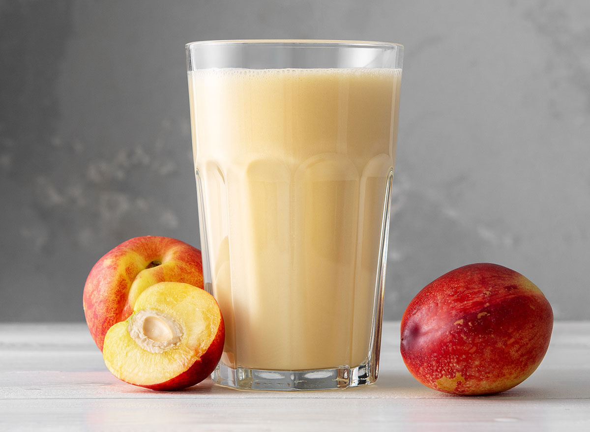 Wie eine leichte, sommerliche Schüssel Hafer - das ist Komfortnahrung in einem Glas. Entscheiden Sie sich für gefrorene Pfirsiche, es sei denn, die Pfirsiche in Ihrer Nähe sind im August perfekt. Die Vanille im Proteinpulver kombiniert sich mit den Pfirsichen für ein helles, warmes und herzhaftes Getränk.