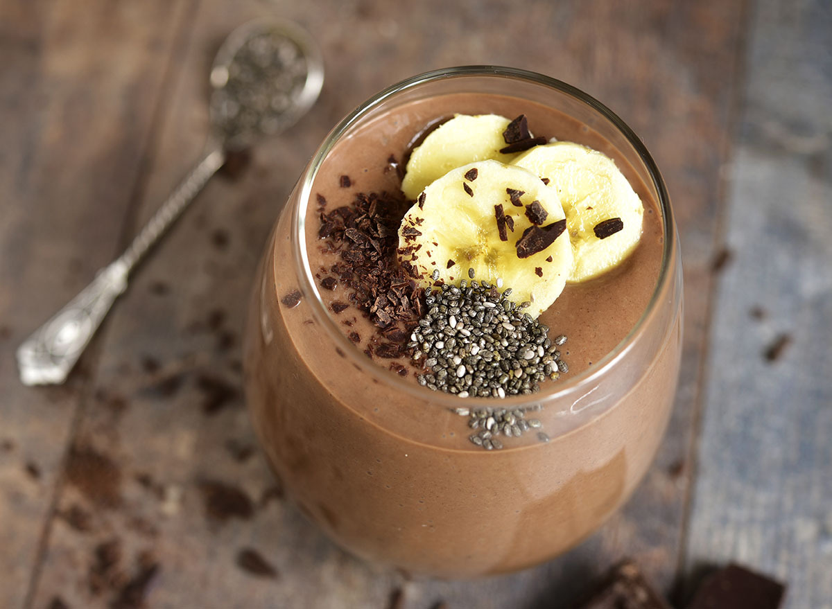Nach dem Mischen dunkle Schokolade auf dem Smoothie und servieren Sie.