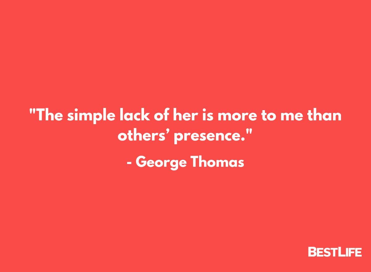 "Der einfache Mangel an ihr ist mir mehr als die Gegenwart anderer." - George Thomas