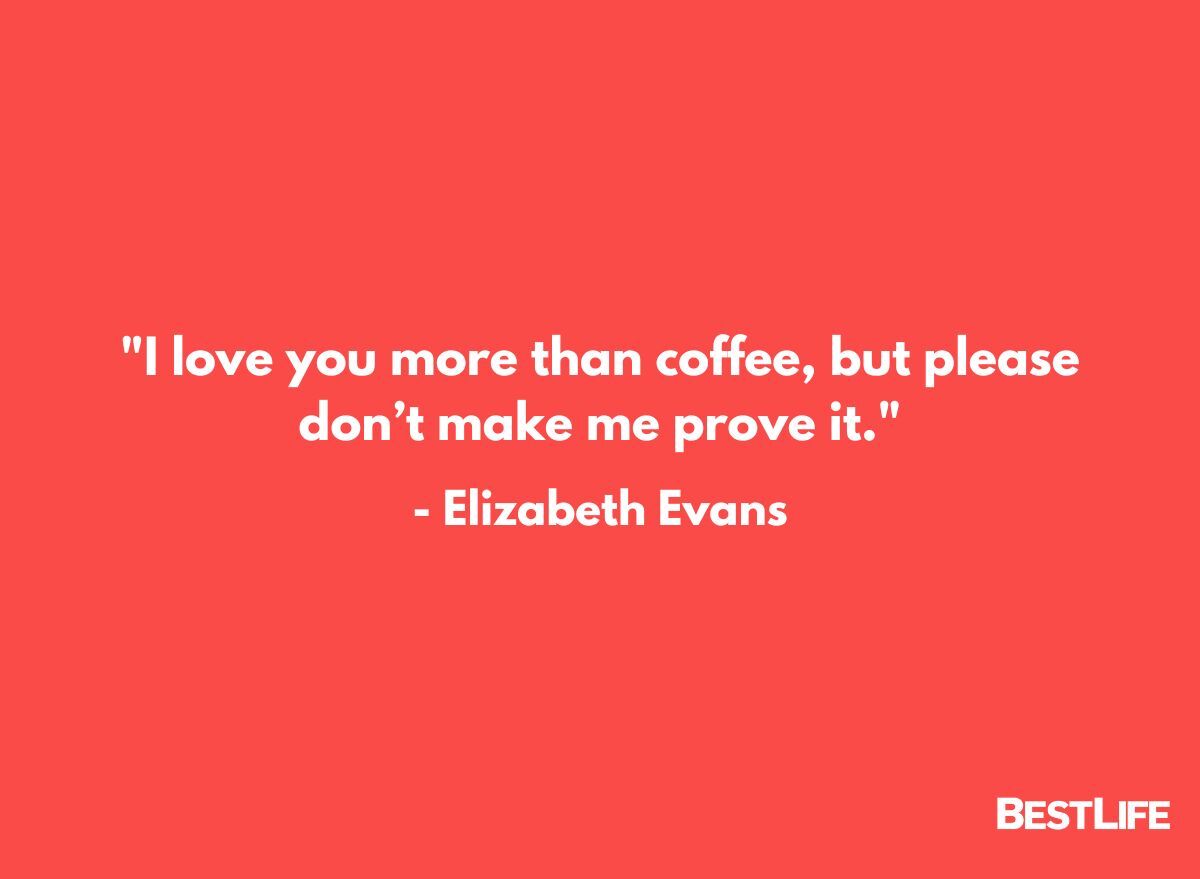 "Ich liebe dich mehr als Kaffee, aber bitte lass mich nicht beweisen." - Elizabeth Evans