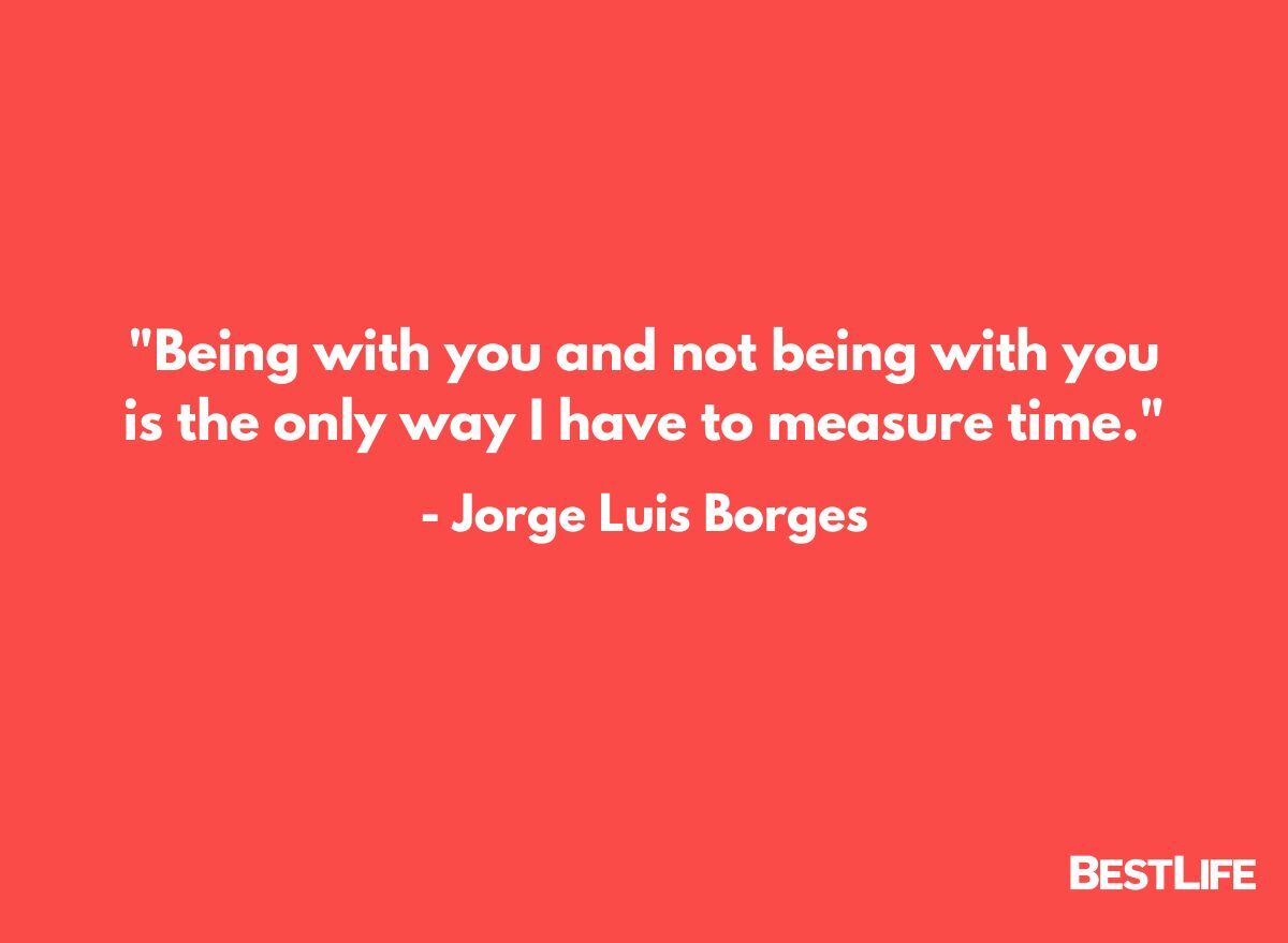 "Mit dir zusammen zu sein und nicht mit dir zusammen zu sein, ist der einzige Weg, wie ich Zeit messen muss." - Jorge Luis Borges