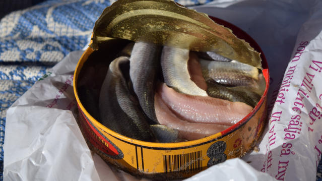 Surströmming ist ein fermentierter baltischer Hering aus Schweden. Dieses Gericht wird durch Fermentieren von Hering in Salzwasser bis zu 6 Monaten hergestellt und für das längste 1 Jahr im Blechkasten gelagert. Dieser Vorgang erzeugt auch eine Art von Blechbgas und erzeugt eine "Open Box" -Pfeugung für diejenigen, die gerne essen und trinken. Dies ist auch der Grund, warum diese Schachtel mit Fisch von einigen Fluggesellschaften aufgrund des Explosionsrisikos verboten wird.