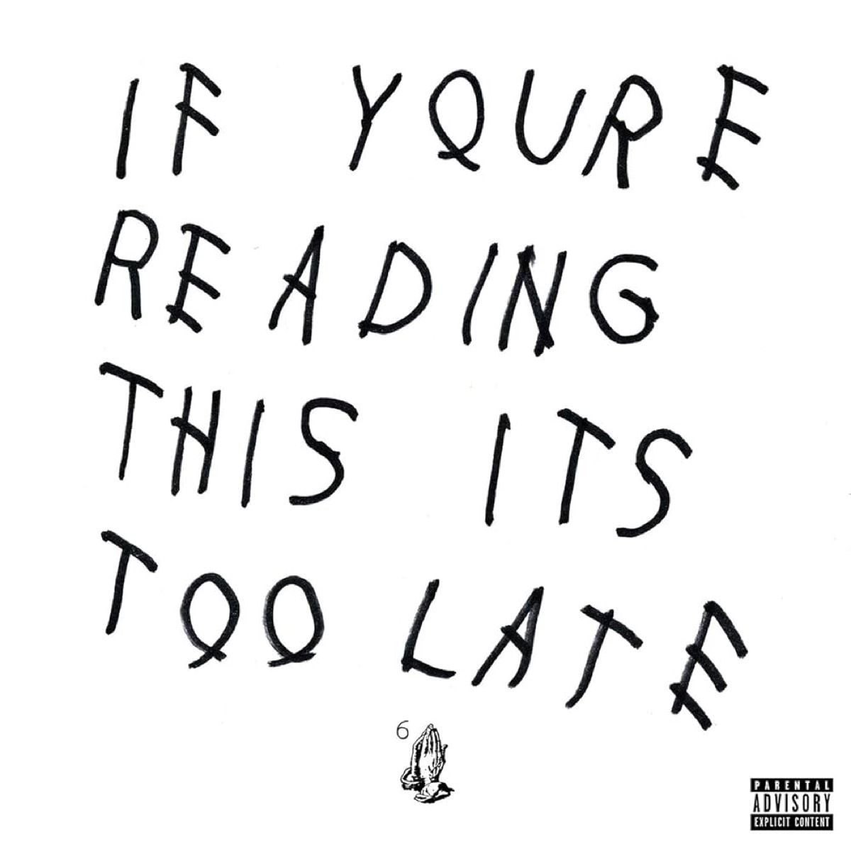Drake's Das vierte Mixtape war eine überraschende Veröffentlichung Anfang 2015, und Sie werden vergeben, dass die Leute, die für die Gestaltung der Albumkunst verantwortlich waren, genauso überrascht waren wie die Fans des Rapper. Das Cover steckt nichts als den Titel, der in seltsamerweise unterschiedlicher Handschrift über einige kleine Gebetshände gekritzelt ist. Trotz (oder vielleicht wegen) des scheinbar Slapdash -Minimalismus von Wenn Sie dies lesen, ist es zu spät Es wurde ein ikonisches Albumkunst. Die Schriftart, die auch Drakes Handschrift ist, auch wurde ein Mem .