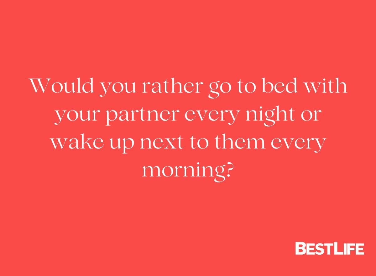 - Möchten Sie lieber jede Nacht mit Ihrem Partner ins Bett gehen oder jeden Morgen neben ihnen aufwachen?