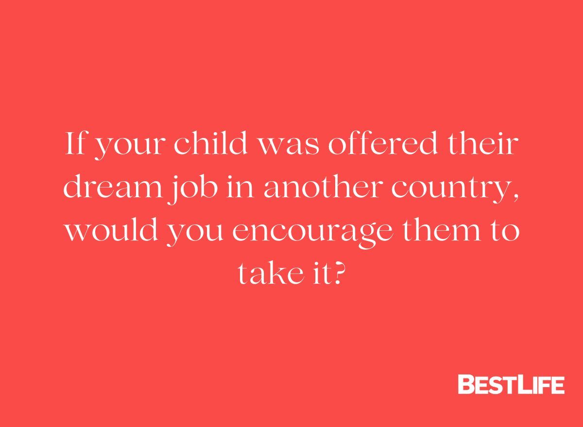 - Wenn Ihrem Kind ihren Traumjob in einem anderen Land angeboten würde, würden Sie es dann ermutigen, ihn zu nehmen?