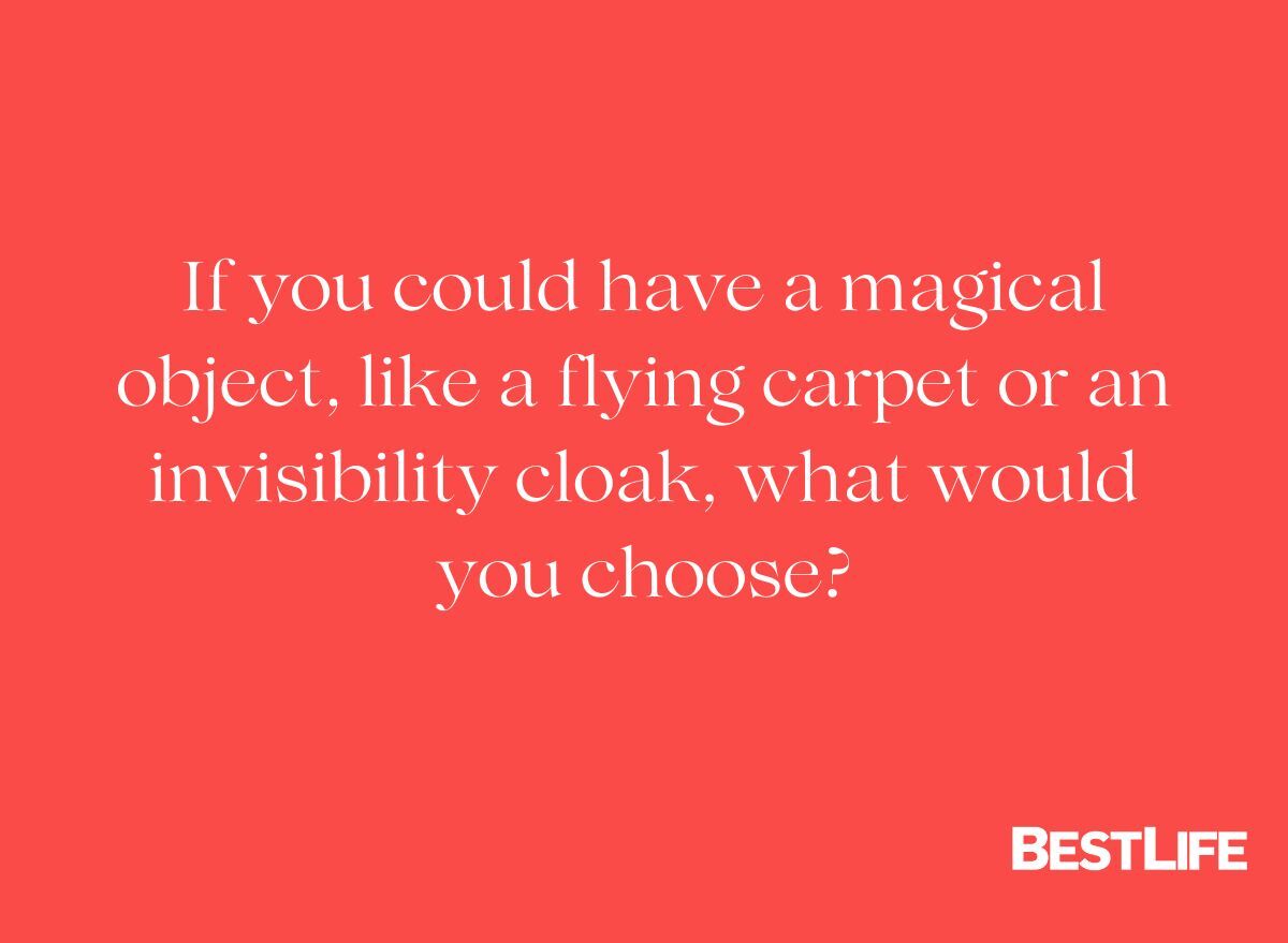 - Wenn Sie ein magisches Objekt bekommen könnten, wie einen fliegenden Teppich oder einen Unsichtbarkeitsumhang, was würden Sie wählen?