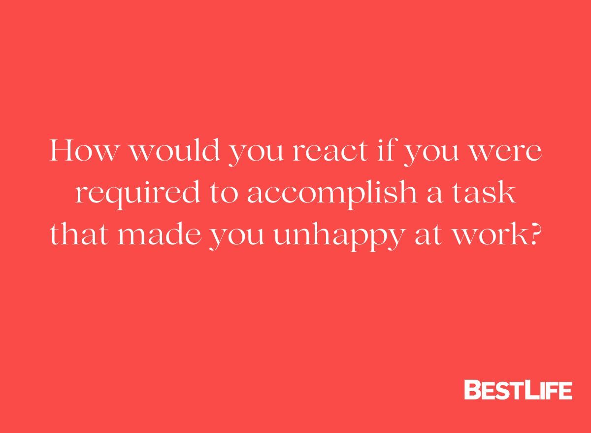 - Wie würden Sie reagieren, wenn Sie eine Aufgabe erfüllen würden, die Sie bei der Arbeit unglücklich gemacht hat?