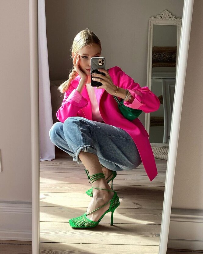 Mit seiner heftigen Popularität im Jahr 2021 ist dieses Modell an die Serie "Playing in the Tintenfisch" gebunden. Nach seiner Veröffentlichung wurde die Welt buchstäblich nach den gleichen Kostümen wie die Hauptfiguren der Serie gefragt. Die Sportjacke der 70er Jahre ging jedoch noch weiter und begann, den Laufstegen und den Massenmarkt in ihren verschiedenen Farben und Stilen zu gewinnen. Miuchia Prada in der Miu Miu -Kollektion kombinierte mutig eine Sportjacke mit Röcken, strengen Taschen und anspruchsvollen Schuhen. So war dieses Ding im 21. Jahrhundert eine brandneue Lesung.