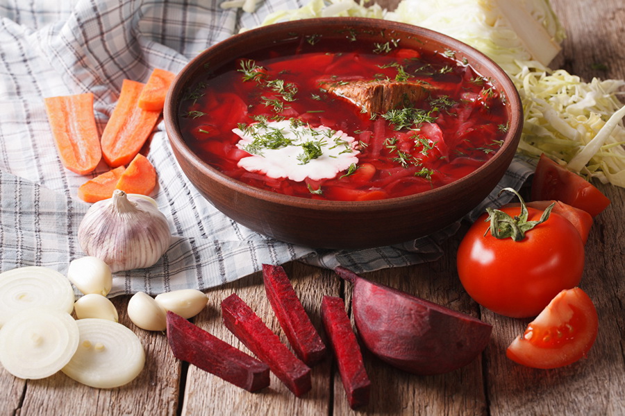 Beginnen wir mit Klassikern und Chefartillerie. Ausländer wissen, dass Borsch ein authentisches Symbol der Ukraine ist. Und es ist kein Wunder, dass der Kampf um das Gericht in der internationalen Arena noch nicht abgeschlossen ist. Erinnern Sie sich daran, dass Borsch kürzlich als Nationalgericht registriert wurde. Daher sollten Sie eine kulinarische Bekanntschaft mit der Ukraine mit Borschtsche beginnen. Natürlich hat jede Hausfrau seine Geheimnisse, aber die klassische Option ist eine Fleischbrühe in Rindfleisch mit Kartoffeln, Kohl, wo sie mit Rote Beete, Karotten und Zwiebeln hinzugefügt werden. Laut dem Rezept wird am Ende ein wenig Fett zu dem bereits bereiten Gericht hinzugefügt, das mit Gewürzen, Salz und Knoblauch getränkt ist. Sie können jedoch einfach auf Knoblauch aufhören. Der Geschmack fügt auch eine dicke saure Sahne hinzu, die bereits beim Servieren in einen Teller gelegt wird. Aber eine echte Delikatesse ist ein Gericht, wenn Sie es mit Donuts und Speck servieren. Kein Ausländer wird stehen!