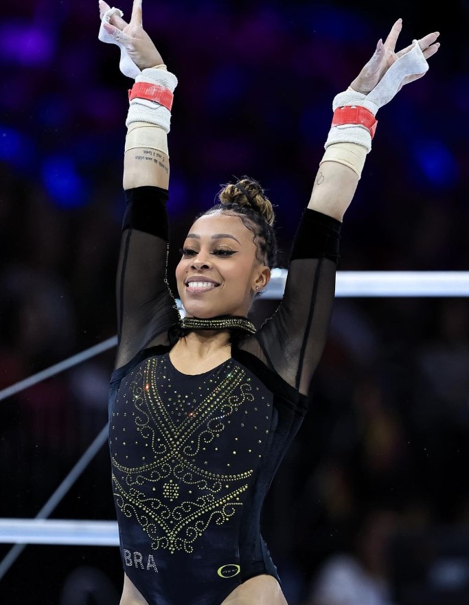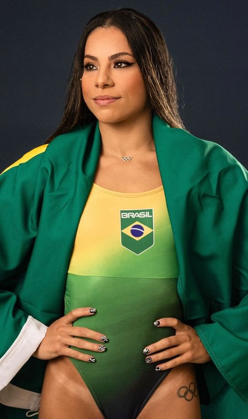Bei den Olympischen Spielen in Paris 2024 haben sie und das brasilianische Team, die ebenfalls von den schönen und talentierten Turnerin Rebeca Andrade, Flavia Saraiva, Jade Barbosa und Julia Soares gegründet wurden, die Bronzemedaille.