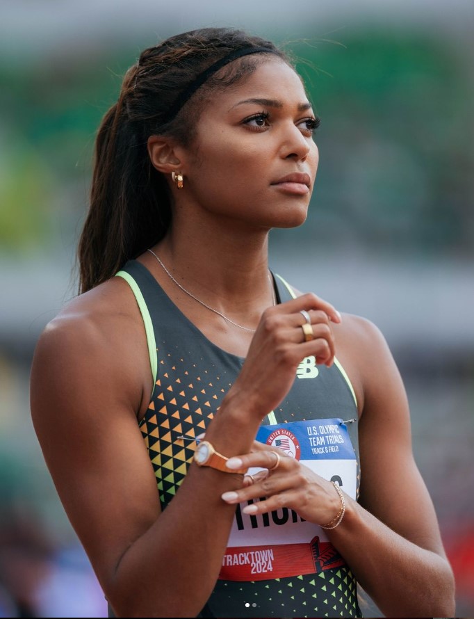 Die 1996 geborene Amerikanerin Gabrielle Thomas debütierte bei den Olympischen Spielen 2020 in Tokio, wo sie die 200 -Meter -Rennmedaille gewann und den USA half, die Silbermedaille in den 4 × 100 weiblichen Metern zu nehmen.