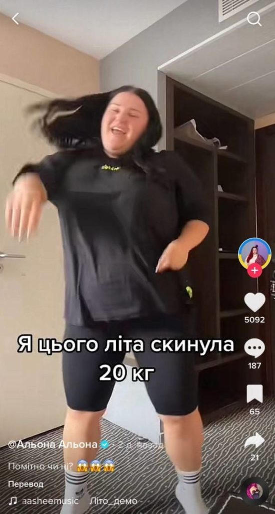 Der Rapper hatte immer üppige Formen und fühlte sich in ihrem Körper gut. Als Alyona Alyona im Jahr 2020 jedoch an der Show "Dancing With the Stars" teilnahm, verlor sie 20 kg. Der Sänger konnte kein neues Gewicht halten. Die Kilogramm fielen auf das Projekt zurück.