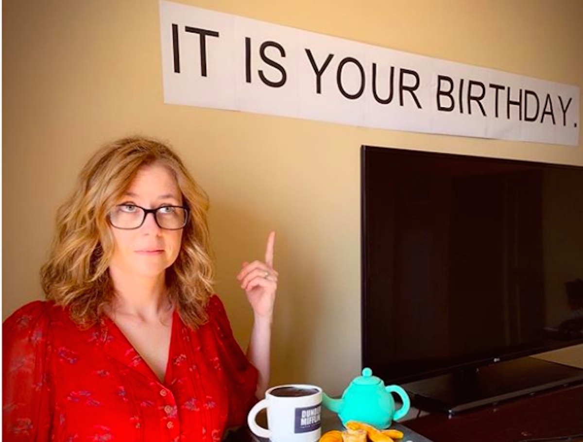Hotel Surprises Jenna Fischer mit Hilarious "Office" -Themed Geburtstags-Geschenke