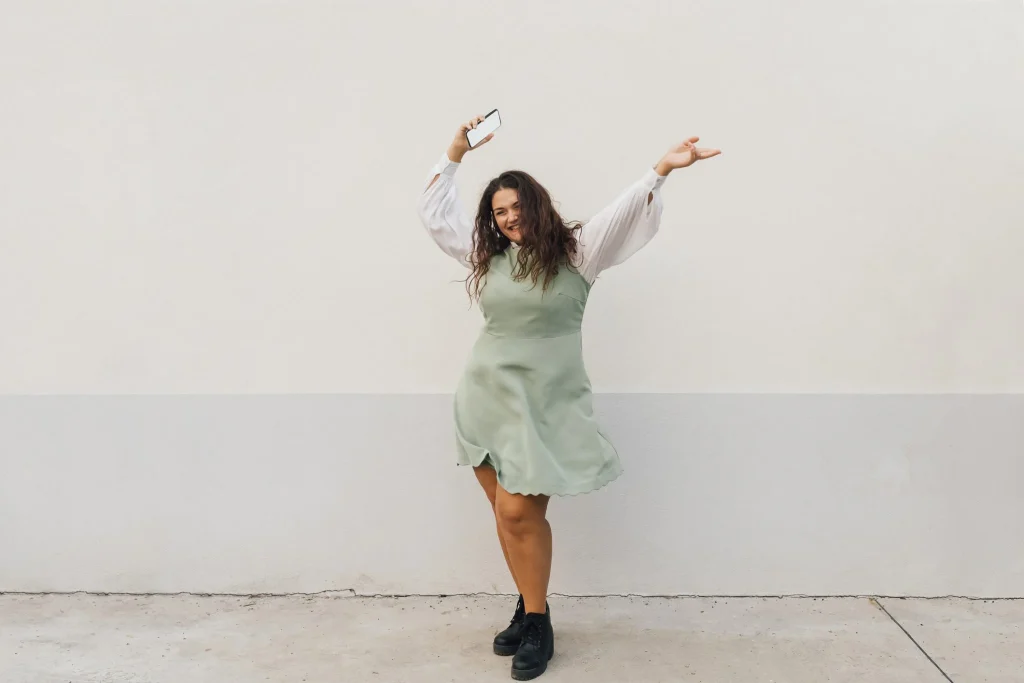Heute liegt der Schwerpunkt zunehmend auf Gesundheit und Wohlbefinden, anstatt sich einem starren Schönheitsideal zu entsprechen. In diesem Zusammenhang werden Frauen mit Formen zunehmend als Verkörperung eines gesunden und attraktiven Körpers dargestellt, und die Selbstakzeptanz spielt eine Schlüsselrolle bei dieser Perspektivänderung.