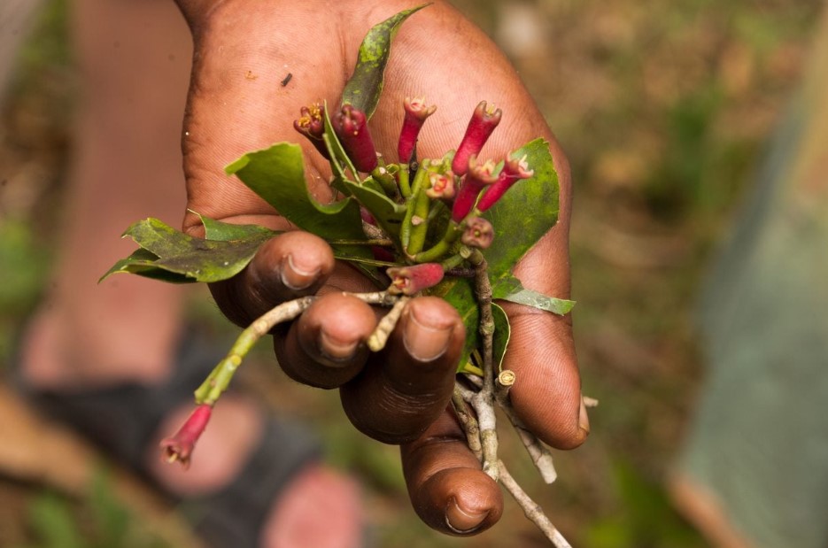 Die Nelke ist der Blütenknopf des gleichnamigen Baumes, der nativ auf den Molecas und Neuguinea -Inseln wächst. Nachdem sie die Blumen gesammelt haben, die Trocknen und Dunkeln und die Gewürz, die wir üblicherweise in Lebensmitteln verwenden.