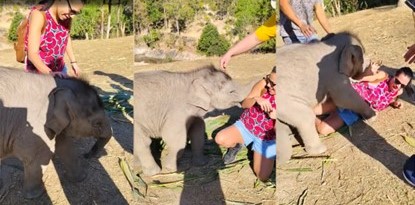 Von dem Bild, das den kleinen Elefanten zeigt, um mit einer lustigen Reise inmitten des Lachens und der Spaß anderer Touristen zu spielen, aber dann drehte sich die Veranstaltung, als der kleine Elefant versuchte, eine so begeisterte Touristin zu umarmen, dass sie zu Boden fiel. Und es stieg immer noch auf ihre Unschuld an