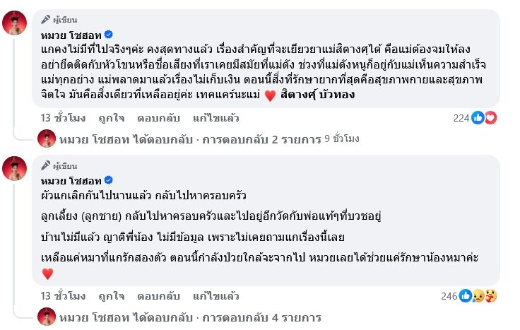 Oh meine Mutter ... wer würde denken, dass eines Tages das Leben von Mae Sitang Bua Thong, Mae Net Idol, Mae Lee "Orange Stop", der früher alle Plattformen geschüttelt hat, das schwerste Drama des Jahres wird! Zuletzt gibt es nur Menschen, die strömen, um das Leben der Mutter zu teilen, die sehr hart trägt. Kann sagen, dass jeder, der Tränen zugehört hat, weil ich jetzt nicht einmal das Haus habe!