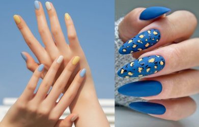 Einige dieser Nageldesigns referenzieren eindeutig auf die ukrainische Flagge, während andere nur coole Nagel-Designs sind, die gelbe und blaue Farben enthalten.