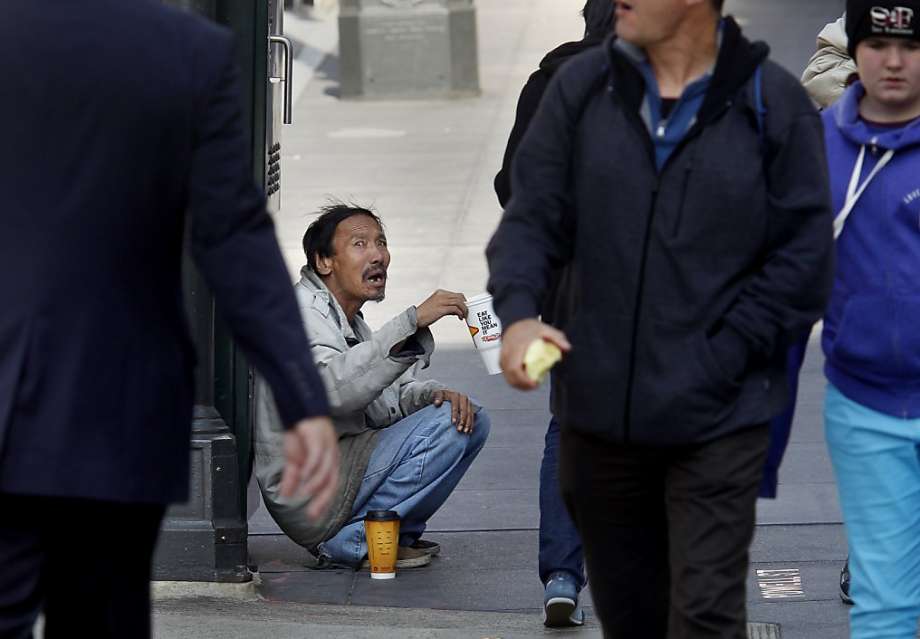 A Beggar strahlt verdächtiges Verhalten Auffordern Eine Frau zu knacken Ein Fall von epischen Ausmaßen