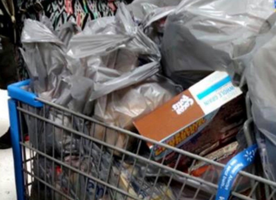 Armee Papa schnappt sich nach dem Spotting, was in Shopper-Lebensmittelwagen ist