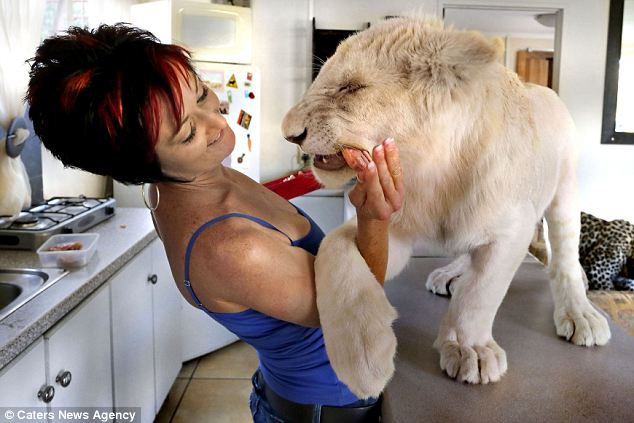 Während des Frühlings ist die Dame, die dieses Löwenjunges als wundervolles Haustier hält, annich Snyman. Sie wohnt in der Nähe von Bela Bela in der Region Waterberg, Südafrika und hat eine