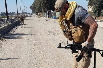 Der britische Soldat, der durch die Überreste eines Schulgebäudes in Syrien simst, macht eine lebensänderende Entdeckung