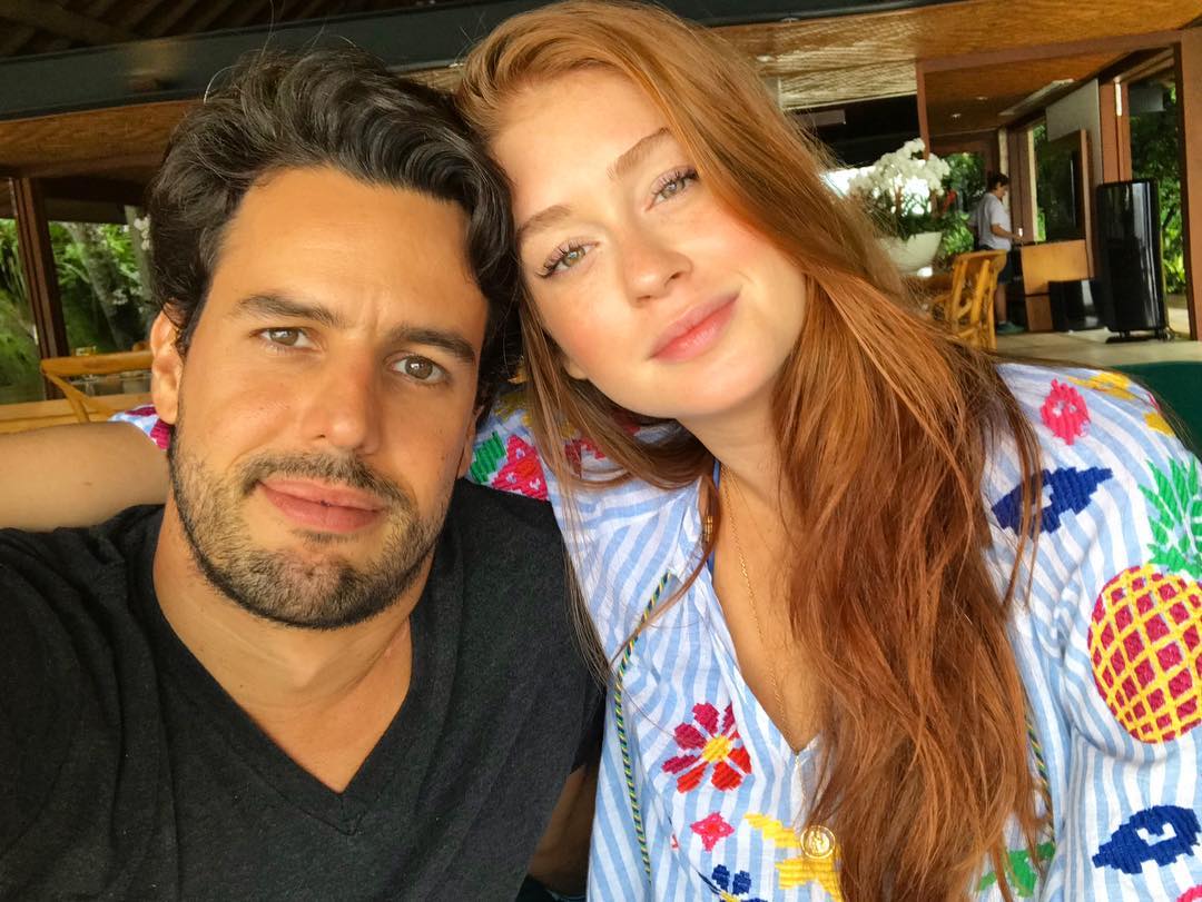 Die Schauspieler André Luiz Frambach und Larissa Manoela erscheinen mit Allianzen am Finger. Verstehe.