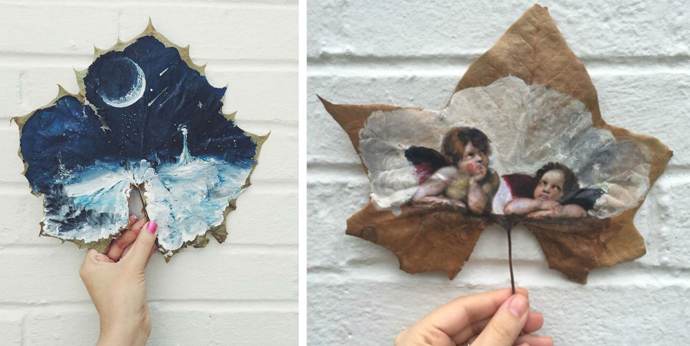 Dieser Künstler malt unglaubliche Kunstwerke auf getrockneten Blättern