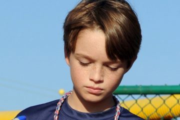 Marine nähert sich ein 9-jähriger Junge mitten in einem Triathlon, der alle anwesend sein