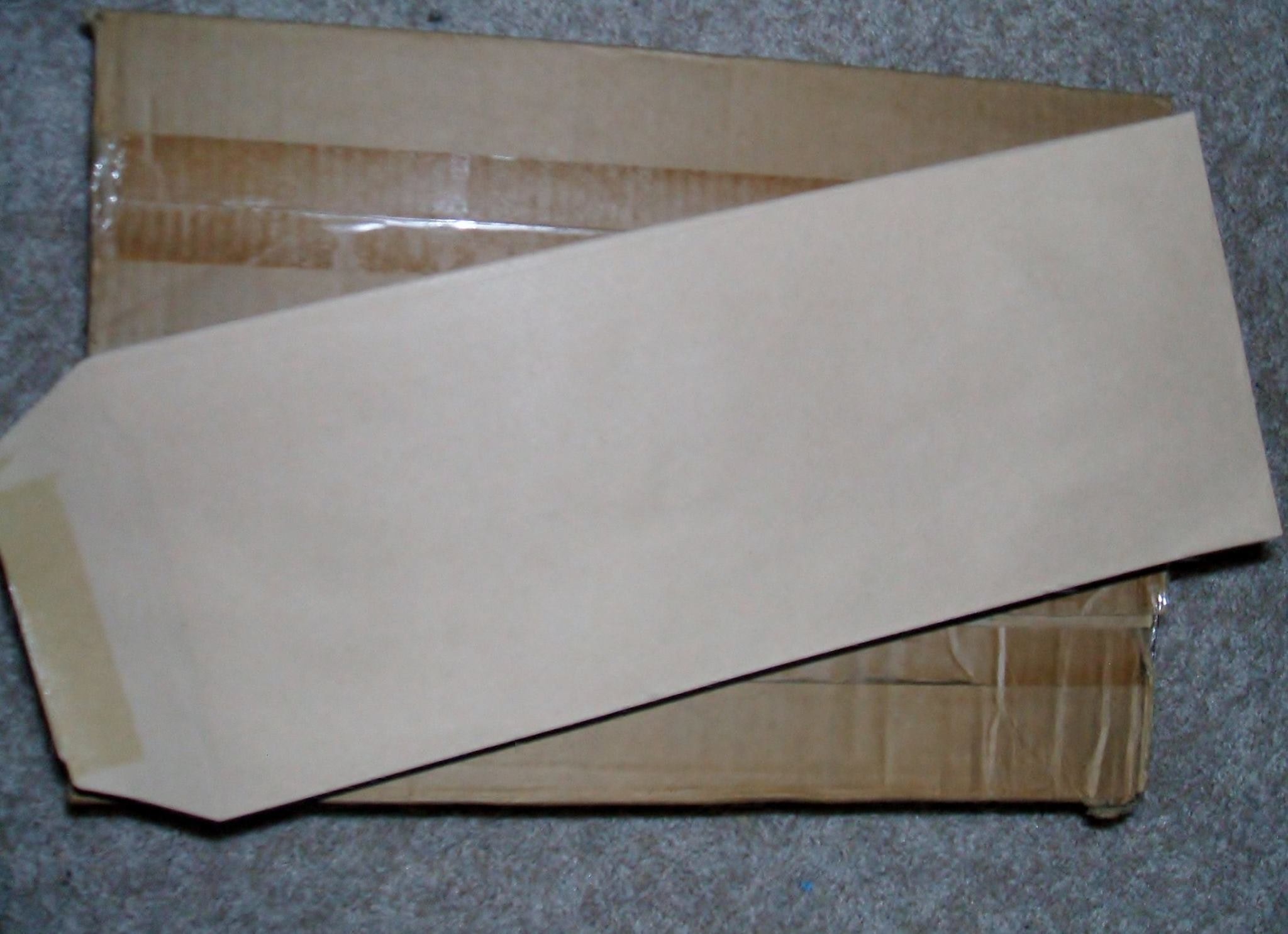 Der Mensch sieht in einem geheimnisvollen Umschlag, der von einem Fremden eintrat, und läuft aus der Bank, bevor es zu spät ist