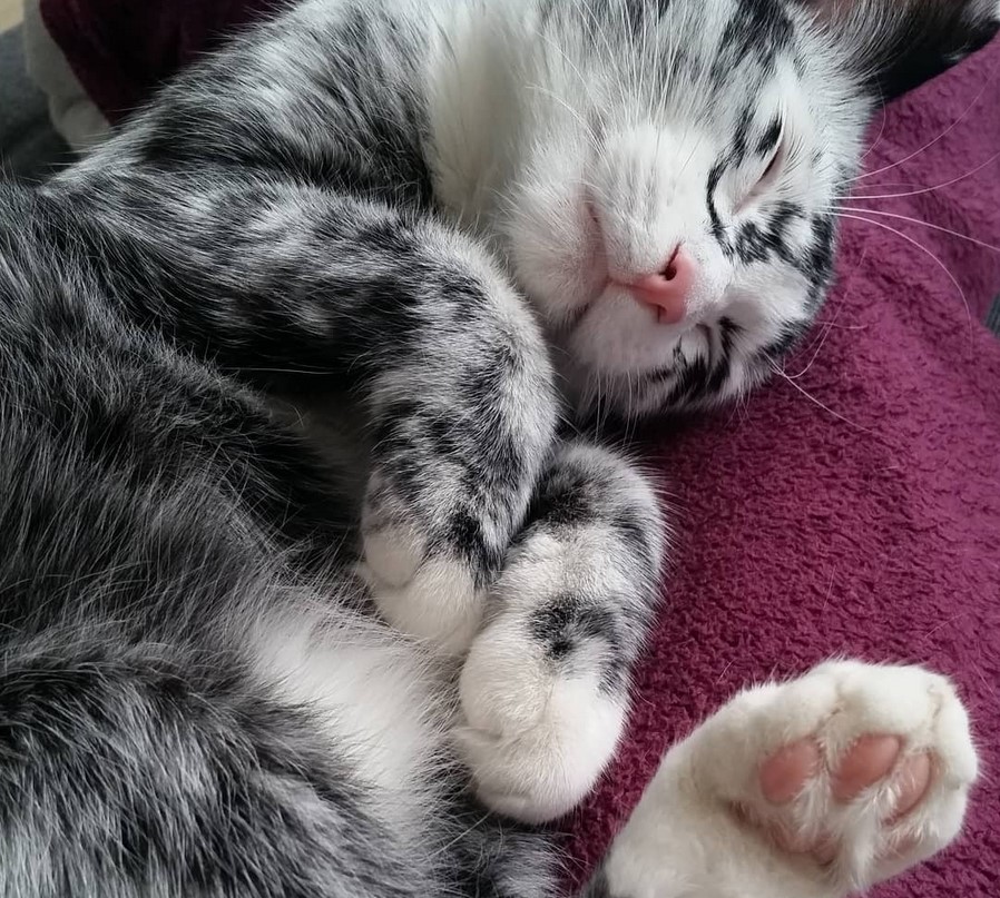 gerettete Smoking-Katze verlässt den Besitzer sprachlos, nachdem sie beginnt, die Farbe zu ändern