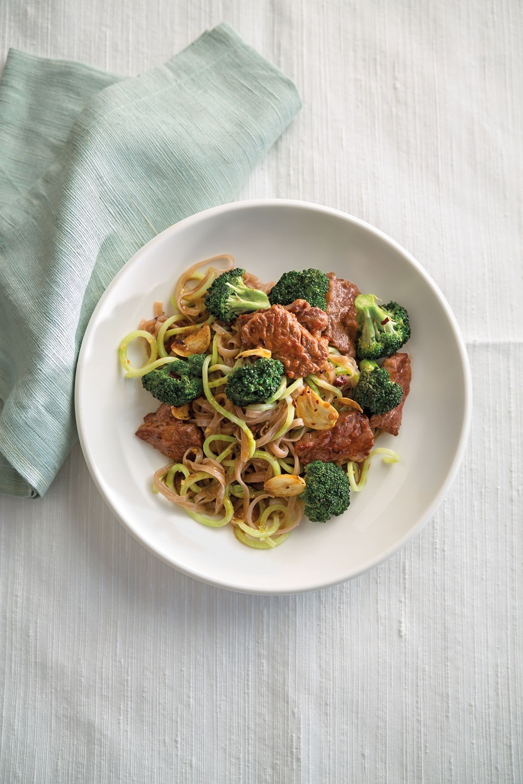 Diese Version eines beliebten chinesischen Takeout-Terrets erhält ein gesundes Update, indem er zusätzlichen Brokkoli hinzufügt und die schwere Sauce beseitigt. Das Einfrieren des Steaks 30 Minuten vor dem Schneiden ermöglicht es Ihnen, es leicht zu schneiden.