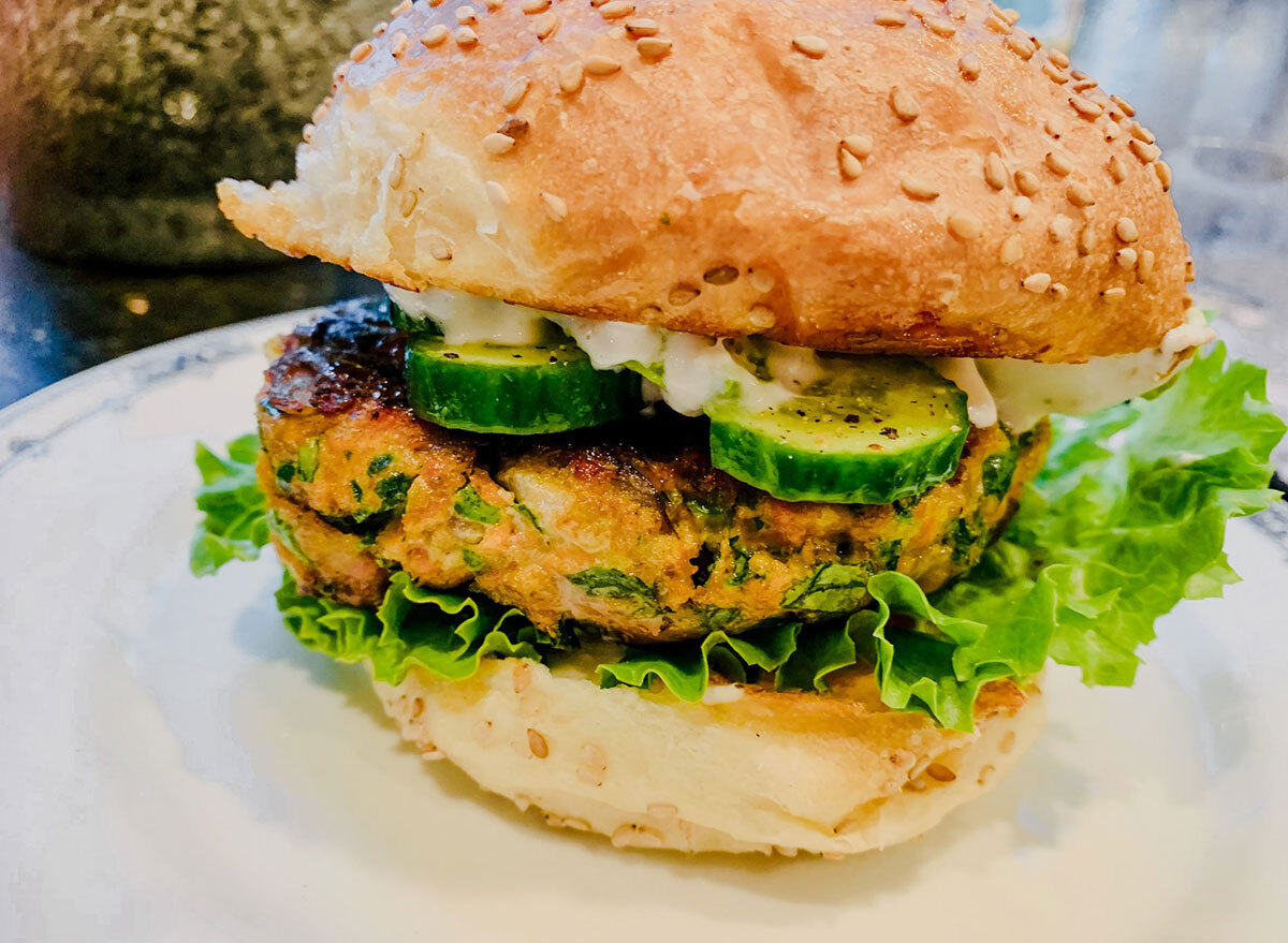 Drehen Sie ein frisches Lachsfilet in einen köstlich herzlichen Burger Patty!