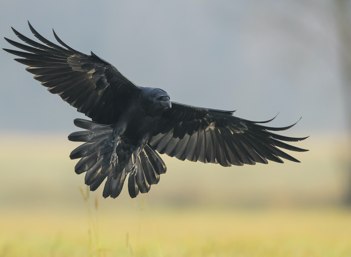 "Berechnung" Raben schnappen sich die Lebensmittel von ahnungslosen Käufern, während sie den Big-Box-Laden verlassen.