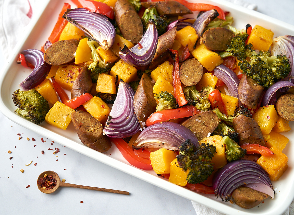 Eine einfache, vegane Wurst- und Gemüserezept von Bleche