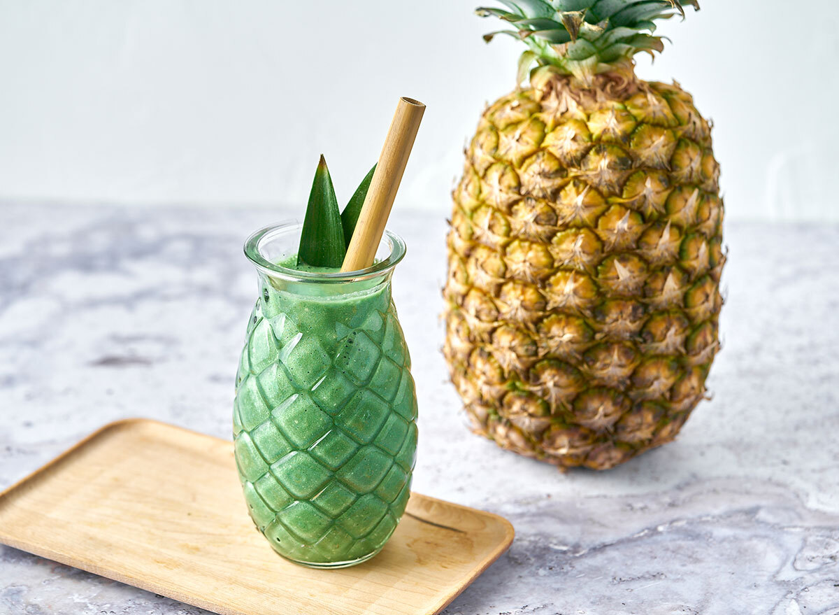 Pflanzenbasierte Spirulina Piña Colada Smoothie