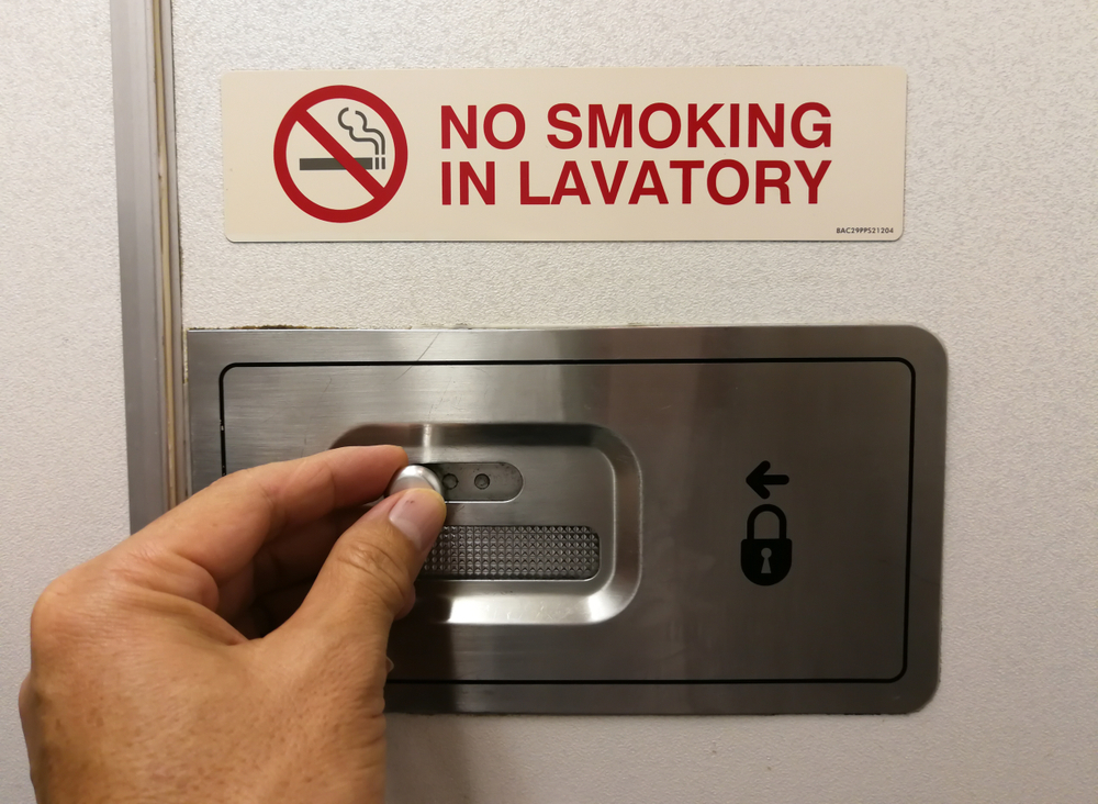 Niemals in einem Badezimmer in einem Flugzeug anfassen, warnen die Flugbegleiter