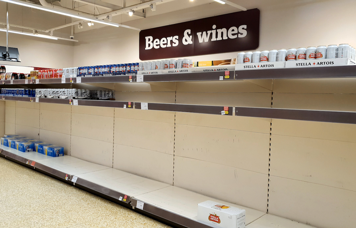 Versorgungskettenfragen und plötzliche Stangenreovenings verursachen in einigen Bereichen Alkoholknappheit.