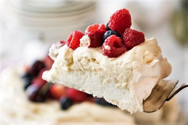 Geheimnisse des kochenden üppigen Desserts "Pavlova"