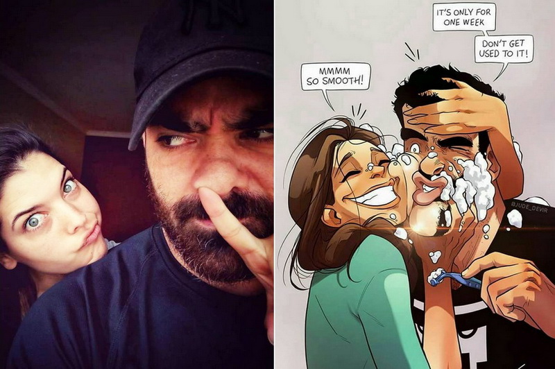 Gewöhnliche Familienwoche inspirierte Illustrator-Künstlerin Yehudu Adidi Devira von Israel, um groteske Comics zu schaffen. Fröhliche Bilder zeigen den täglichen Routine von Menschen in der Liebe. Sie schwören, argumentieren, erscheinen voreinander in den lustigsten und nicht immer bequemen Lebenssituationen.